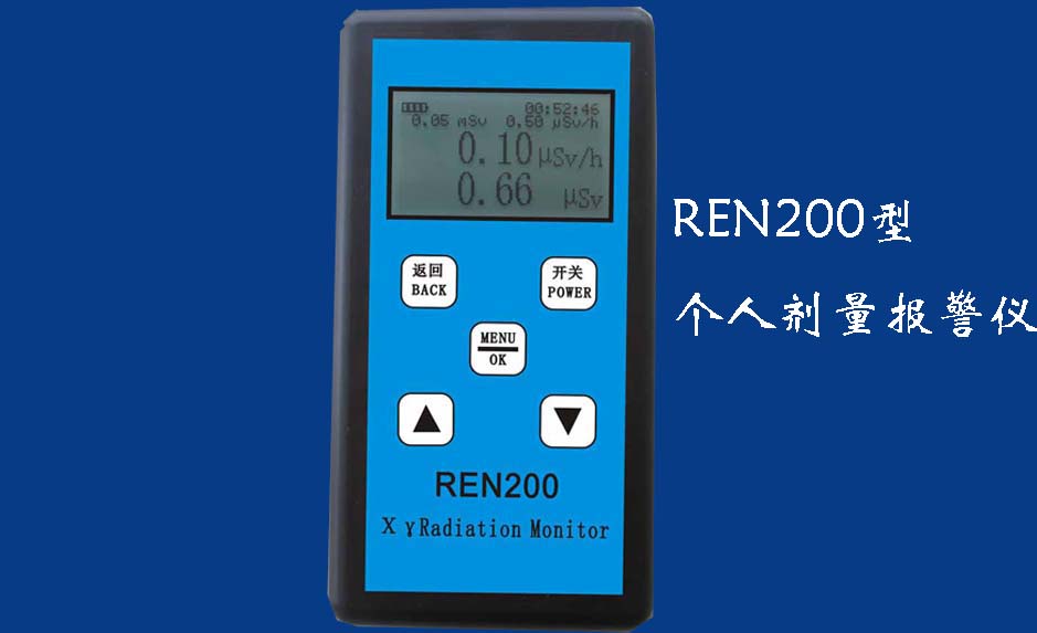 REN200A 個人輻射報警儀REN200A型X、γ輻射個人劑量當量HP(10)監測儀(簡稱:個人劑量報警儀)內置高靈敏度蓋格計數管為探測器,主要用來監測各種放射性工作場所的X、γ以及硬β射線的輻射,具有響應快,測量范圍寬的特點。能顯示工作場所的劑量當量率和累積劑量,更換電池時,日期及累積數據能永久保存。可選配RenRiPersonal個人劑量管理軟件,該軟件可存儲多個人的歷史數據,能記錄日累積、月累積、年累積、輻照時長、計算平均劑量率、扣除或不扣除本底輻射,且以文字和圖譜的方式展現數據。廣泛應用于核電站、加速器、鋼鐵、化工、同位素應用、工業X、γ無損探傷、放射醫療、鈷源治療、γ輻照、放射性實驗室、核設施周圍環境監測等領域中的工作人員進行個人安全防護監測及放射性提示。&nb